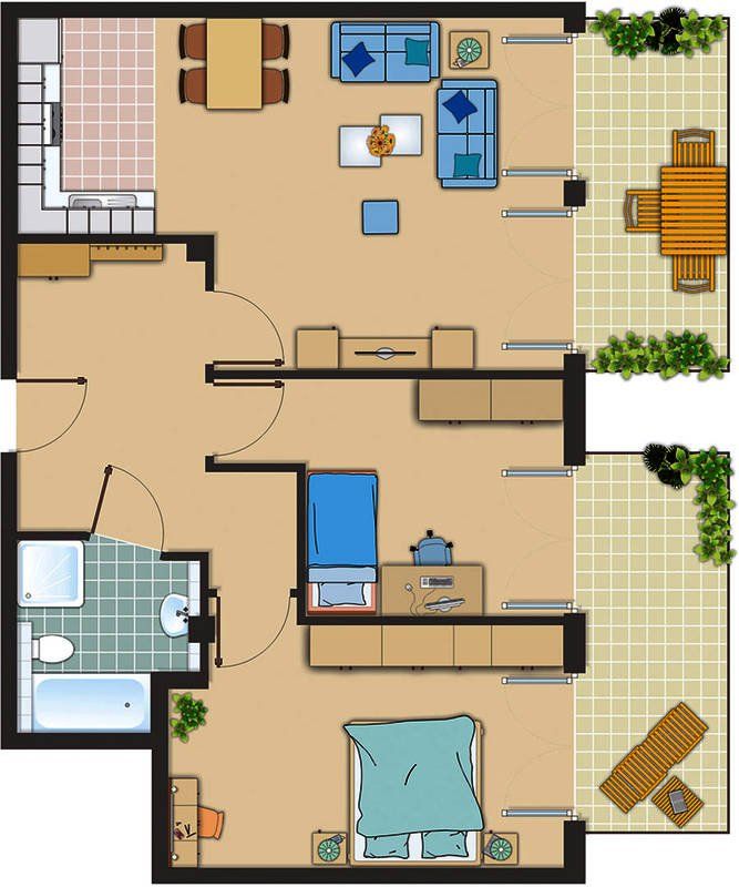 Unsere stilvollen Ein-, Zwei-, und Dreizimmer Wohnungen sind alle in sich abgeschlossen. Als Bewohner können Sie jederzeit Ihre Türen schließen, wenn Sie Ruhe genießen wollen. Die Wohneinheiten sind mit geschmackvollen Bädern und modernen Küchen ausgestattet und bieten vom eigenen Balkon oder von der großzügigen Dachterrasse erhabene Ausblicke.